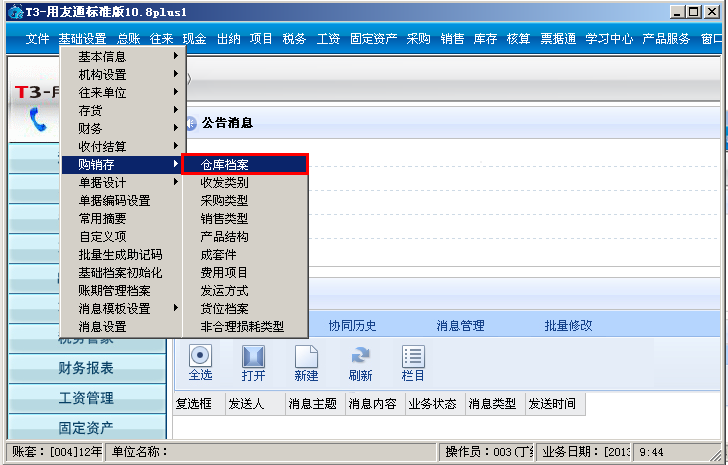1、点击“基础设置”—“购销存”—“仓库档案”,