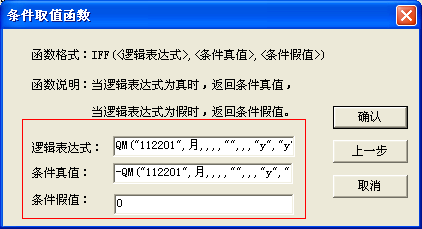 条件真值:QM("112201",月,,,,"",,,"y","y",,)