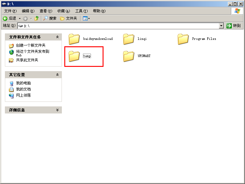 1、先在 D 盘(或者其他非系统盘下)新建一个 temp 文件夹: