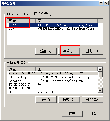 3、选中 TEMP 后点击“编辑”: