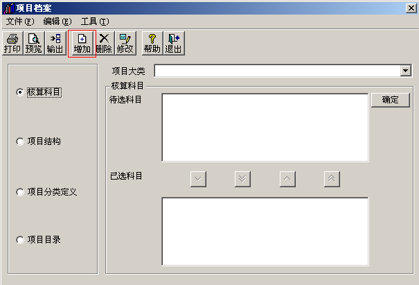4.依次点击基础设置—财务—项目目录,点击项目档案中的增加。