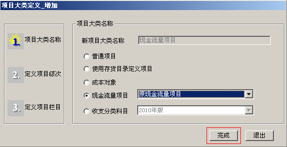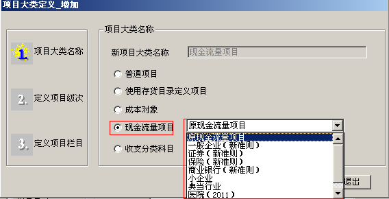 5.在项目大类定义中,选择现金流量项目,行业性质要选择与账套建立时选择的行业性质一致。