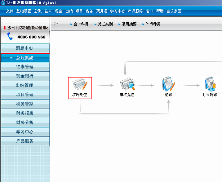 4.在总账系统中点击填制凭证。