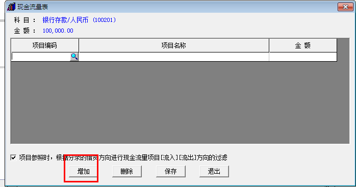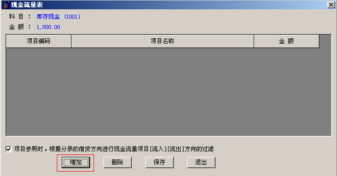 3.在现金流量表中点击增加。