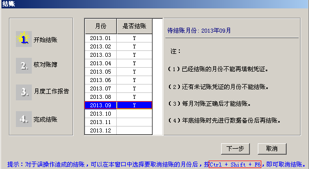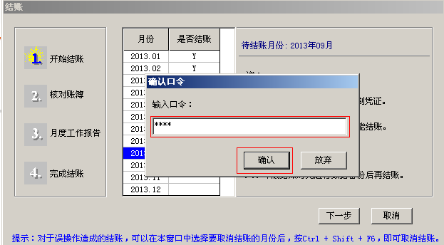 1.在总账中点击月末结账,在月末结账界面选中需要补录流量的月份,进行反结账,按Ctrl+Shift+F6,在确认口令处,输入账套主管的登录密码,点击确认。