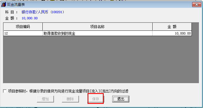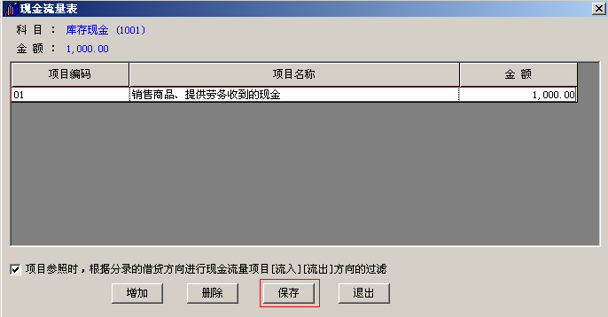 4.选择好对应发生现金流的项目,点击保存。
