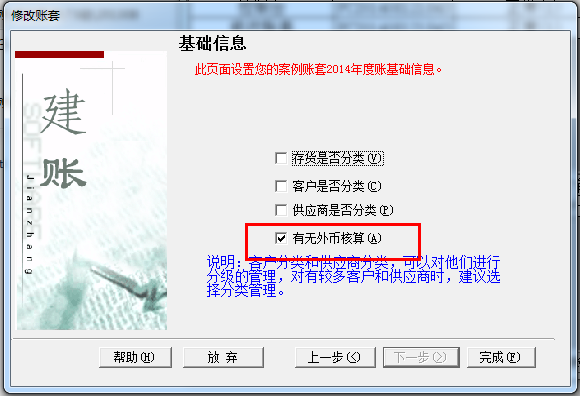 如果已经建立了账套可以demo(账套主管)的身份登录系统管理后点击账套下的修改,勾选上有无外币核算即可