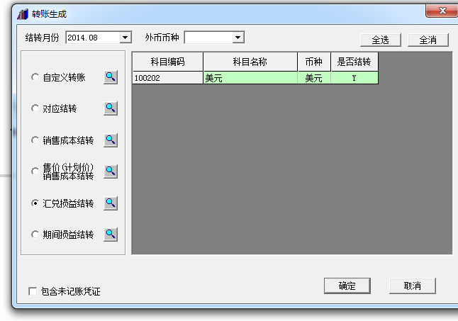 8.点击总账下的期末,再点击转账生成,选择汇兑损益结转,点击’是否结转’出现“Y”的标志: