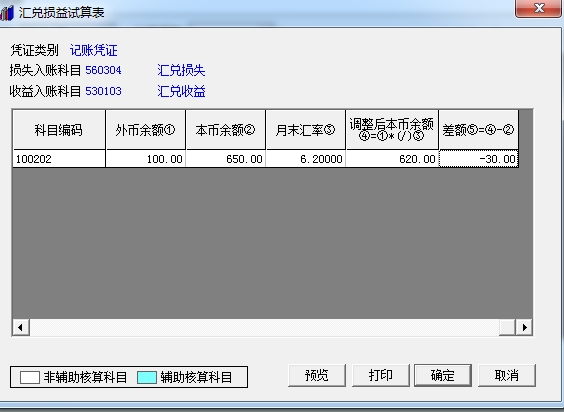 9. 点击’确定’出现汇兑损益试算表的界面: