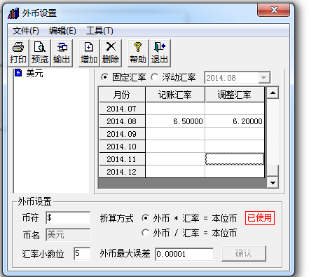 2.浮动汇率:一国货币同他国货币的兑换比率没有上下限波动幅度,而由外汇市场的供求关系自行决定.在软件中使用浮动汇率是每天一个记账汇率,月末一个调整汇率.