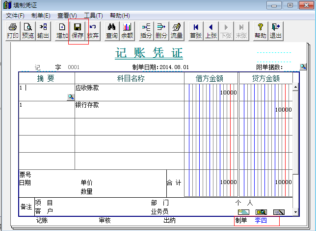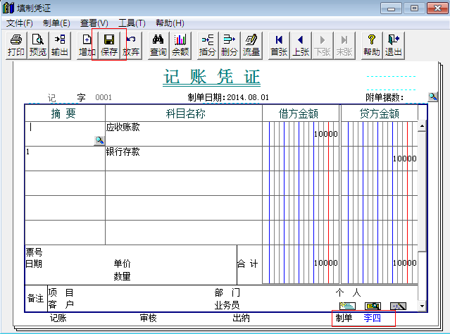 5.修改完成后就可以看到制单人已经由“张三”变成“李四”,最后点击保存。