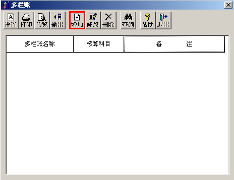 一、依次点击“总账”-“账簿查询”-“多栏账”菜单,出现多栏账查询的界面,点击“增加”按钮: