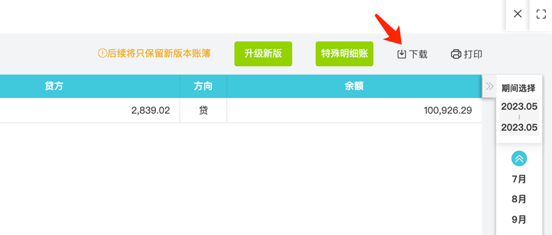 1、旧版下载:依次点击【总账】-【明细账】-右上角【下载】按钮: