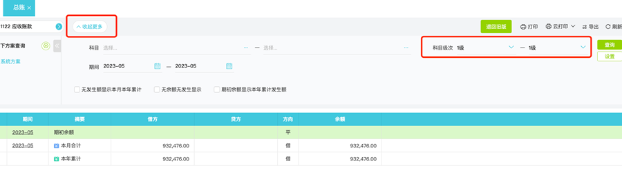 1、依次点击【总账】-【总账】,点击右上角升级新版,再次点击【展开更多】,选择起止期间全年和科目级次,如果下载所有科目,科目可以选择从第一个科目-最后一个科目或者科目全部不选择,再去进行查询后,点击右上角导出。