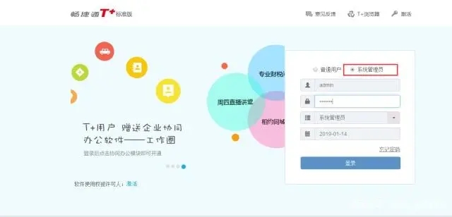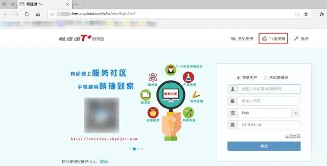 3.用安装好的T+浏览器登录系统