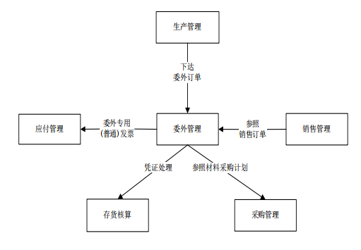 《委外管理》中委外发票会传递到《应付系统》,形成应付账款和进行后续付款业务。