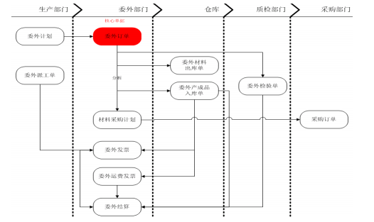 3、 委外业务以委外订单为核心,必须严格按照委外订单进行收发料的业务处理《委外管理》