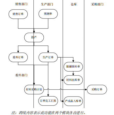1、 由销售部门填写销售订单或者由生产部门根据销售预测填写预测单,并按照销售订单或预测单依据物料清单推式(投产)生成生产订单或委外订单;