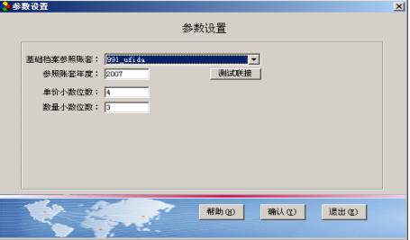 进入跨账套查询主界面,在树状菜单“基础设置”下的“参数设置”:【测试联接】:系统校验所设置参数是否为可用的 SQL SERVER 数据库联接;若当前设置通过校验,系统提示;