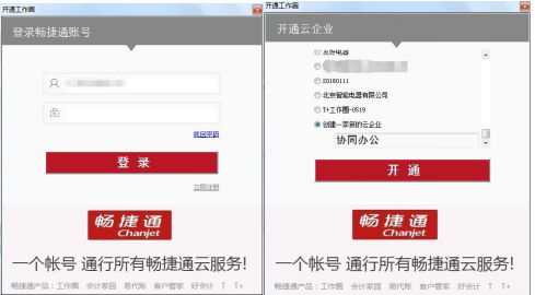 新建帐套的最后一步,可以随着帐套的建立开通云应用,即开通协同办公,自动创建工作圈企业与帐套绑定。也可以在帐套建立好后,在协同办公功能介绍页,开通协同办公,此时开通时可以用已有账号登录,选择已经存在的工作圈企业与帐套绑定。