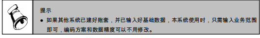 1、 初建账套后,进入本系统后,用户应进入核算模块设置本账套的核算业务范围设置。