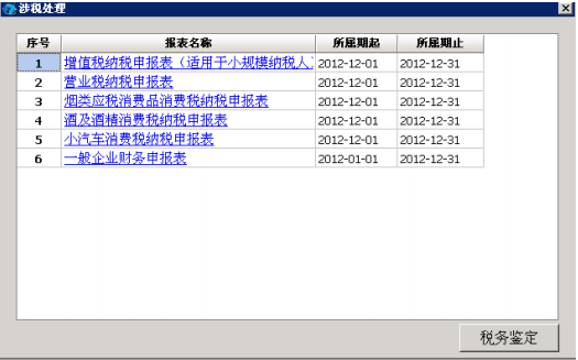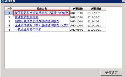 点击涉税处理,根据 7.4.3.2 纳税维护,系统会出现需要申报的报表,点击进入各类报表。