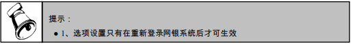 系统在建立新的账套后由于具体情况各不相同或业务的变更,对各功能的要求也有所不同,因此需要根据具体情况对网银系统进行定制,以适应企业的管理方式。“选项“功能提供了与网银系统有关的参数设置,这些参数决定了网银的各项执行功能及控制方式。