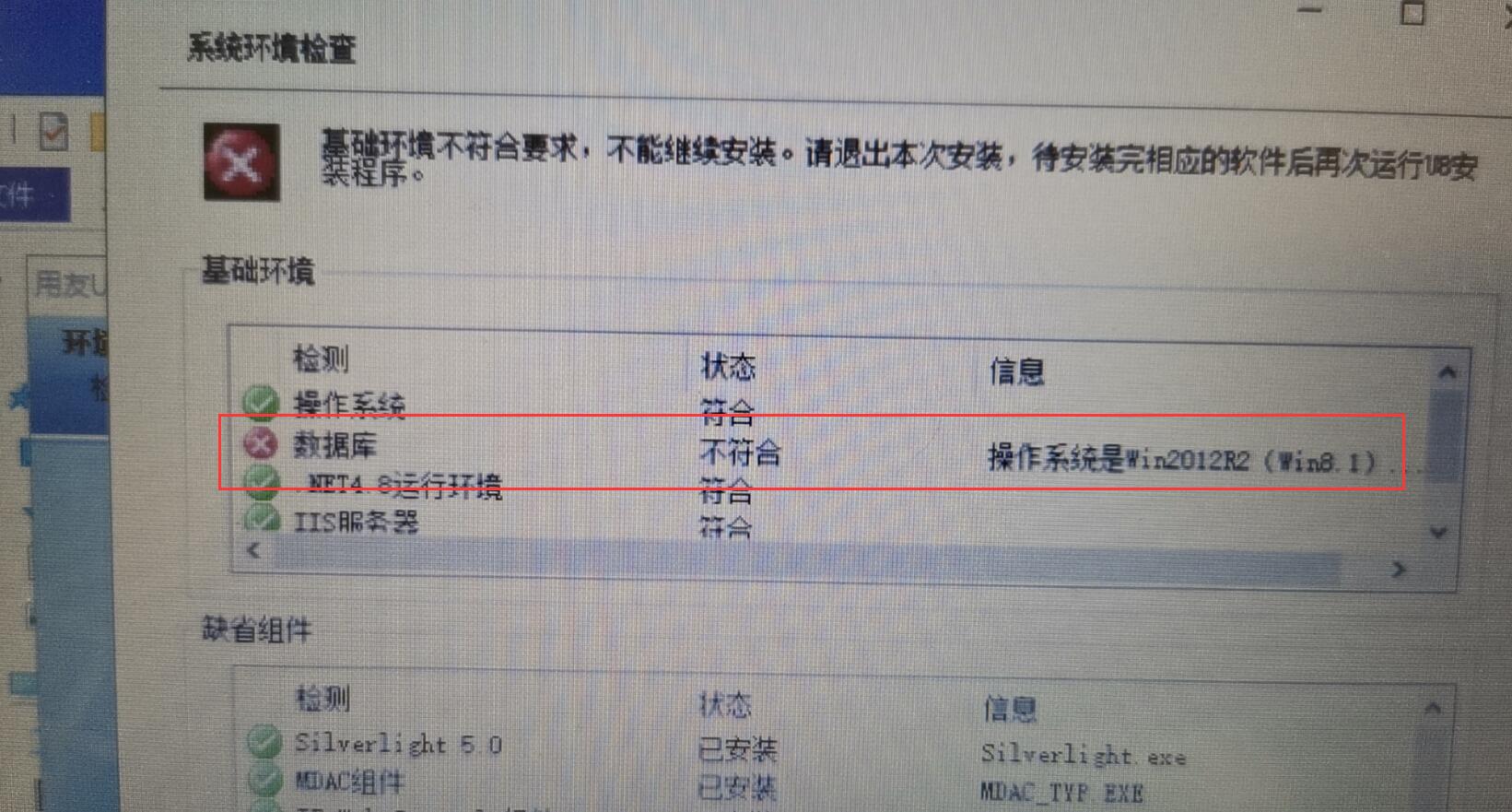 今天有网友咨询了一个事儿,问如何把 用友U8+V16.1应用服务器和数据库服务器分离部署,这个问题以前研究过,没写过相关的文章,今天正好有客户询问,那就写一下,客户直接点了下一步下步,然后出现了检测,都可以通过,唯独数据库不能通过,其实就是因为本机不做数据服务器,没有安装数据库,如下图所示