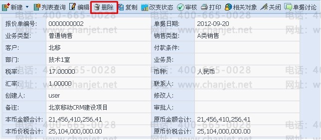 如果您所要删除的报价单记录中存在相关对象-附件时,直接删除相关附件对象;存在相关对象-评论时,直接删除相关评论对象。