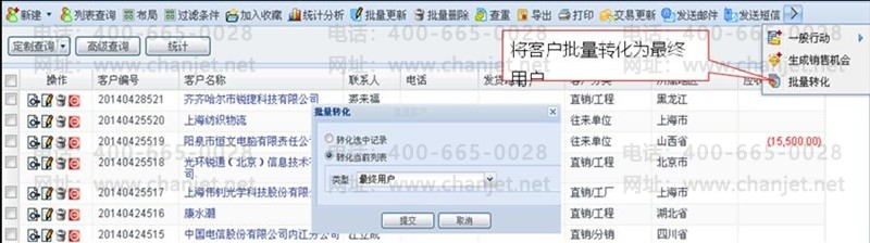 最终用户在服务管理的各个环节都能够使用(请求、工单、报价、结算、配件管理等等),主要用于信息记录,比如后续维修完毕,将产品寄回给最终用户(地址)需要,或者作为开票的依据等等最终用户可以按照“相关/负责员工”、“部门”等维度控制数据权限。
