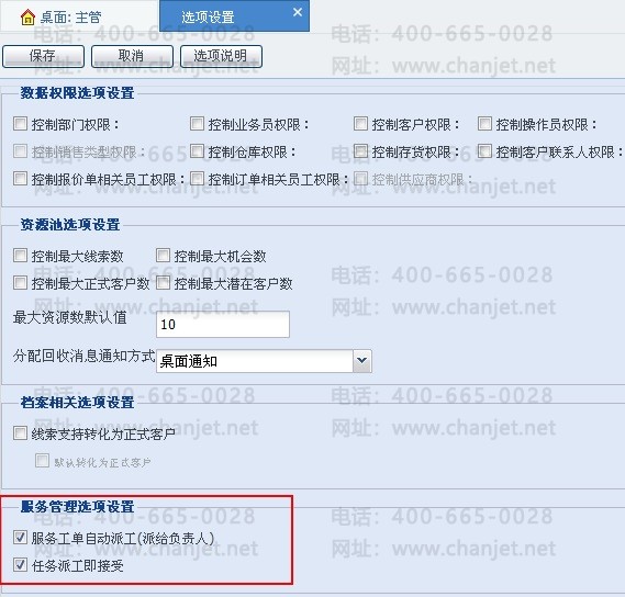 非本人的任务不能进行拒绝、完成、关闭操作。系统中与派工相关的选项设置: