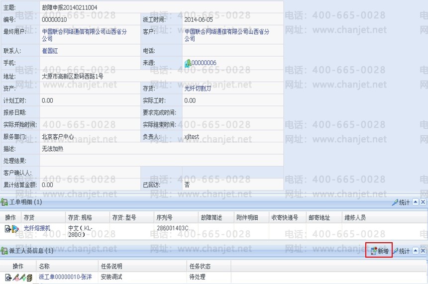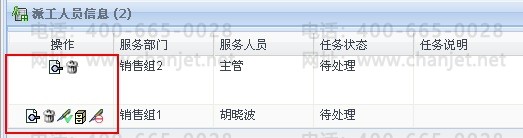已审核未关闭的服务工单可以维护派工人员信息(包括新建、编辑、删除、拒绝、完成、关闭)