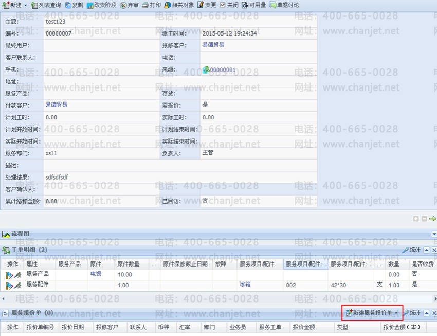 服务工单满足三个条件,可以在相关对象下新建服务报价单:
