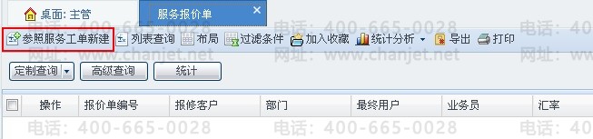 在服务报价单的列表点击【参照服务工单新建】按钮