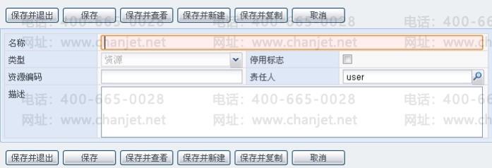 [保存并新建]:保存当前资源信息,并打开资源的新建页面。