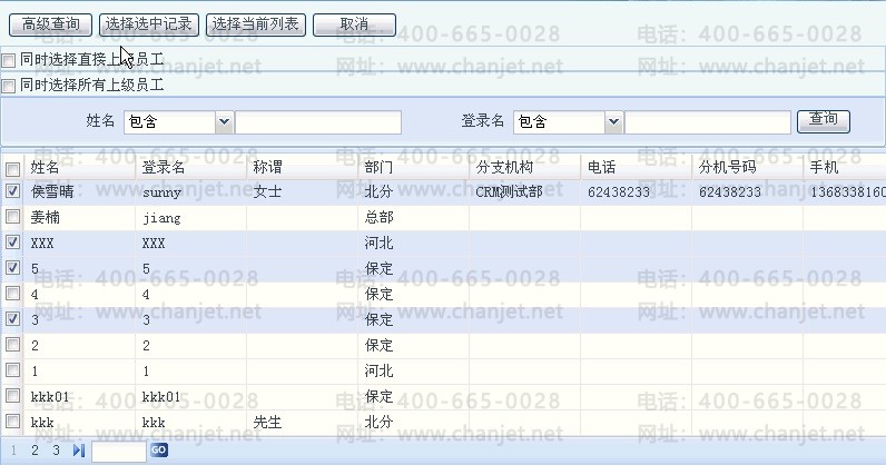 进入员工加入工作报告的选择窗口,选择员工后点击[选择选中记录]按钮。