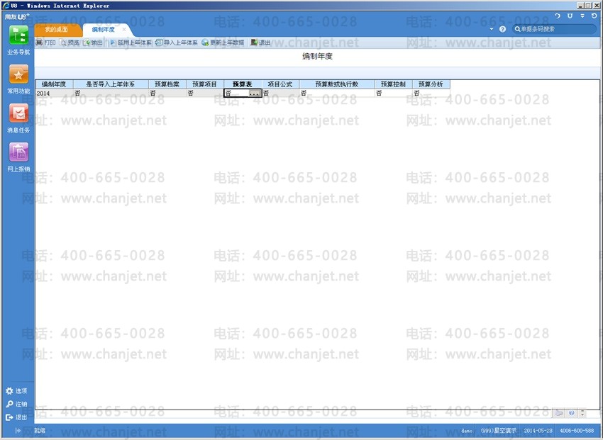 预算表:显示当前编制年度是否导入了上个编制年度的预算表样;