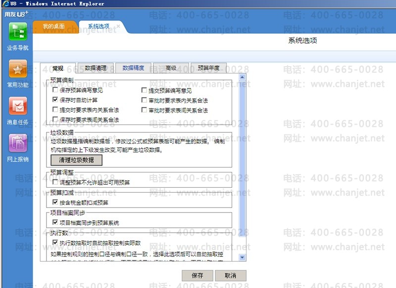 预算管理系统的系统选项主要是进行预算编制、清理垃圾数据、导入上年预算体系、数据清理、数据精度设置以及设置预算数据年度等工作。