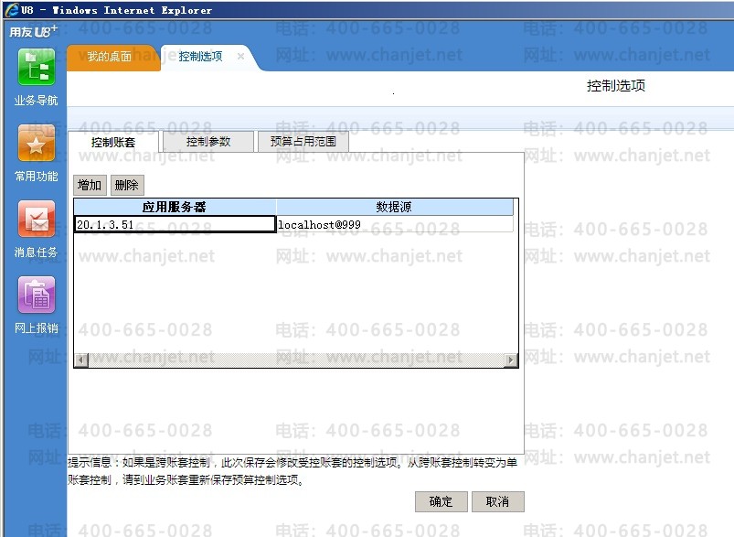 服务器:该控制账套对应的应用服务器,手工输入,是必输项。