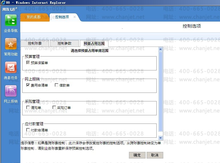 控制账套:即指需要进行预算控制的业务系统(如网上报销系统)所在账套。