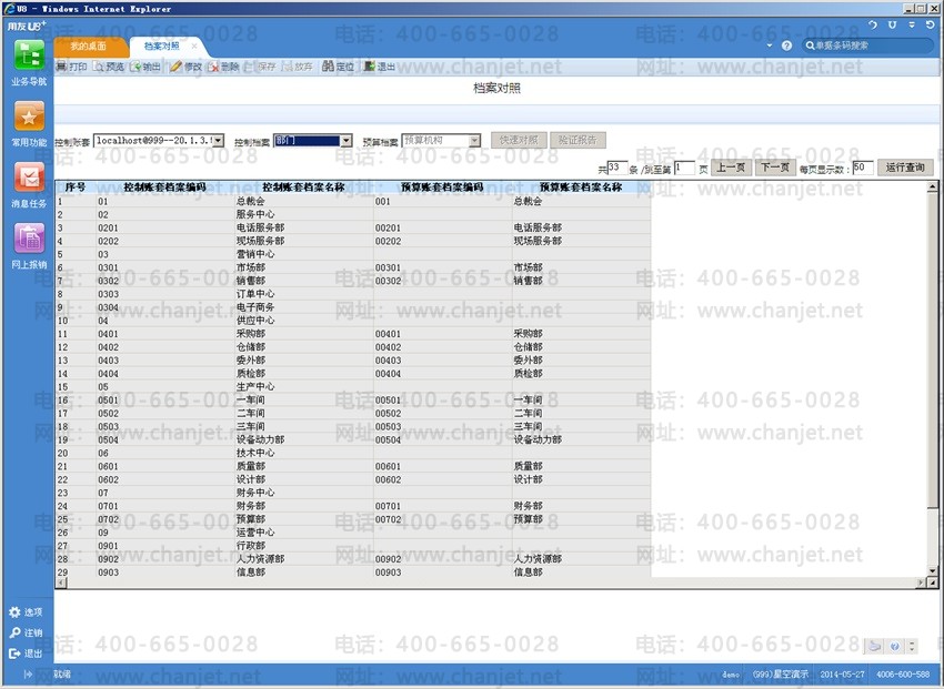 点击〖预算管理〗-〖设置〗-〖档案对照〗设置预算管理档案对照关系