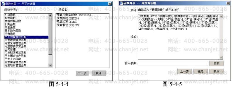 1. 选择预算数公式页签时,点击〖业务函数〗后可供选择的函数为预算管理函数和其他业务系统函数。如图 5-4-4、5-4-5: