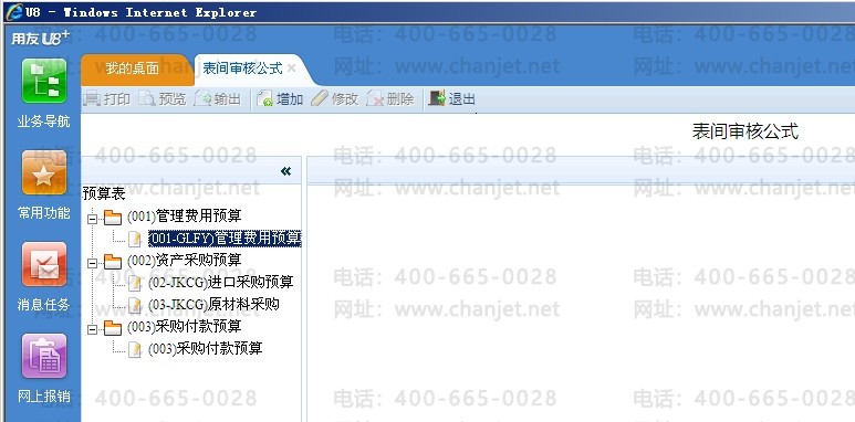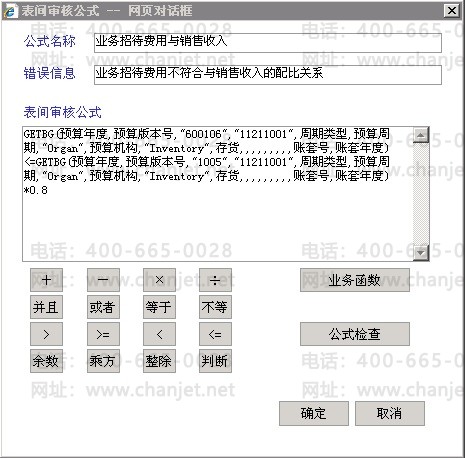 点击〖预算管理〗-〖预算体系〗-〖表间审核公式〗,可对预算输入表和查询表的格式与表内运算公式进行设置,