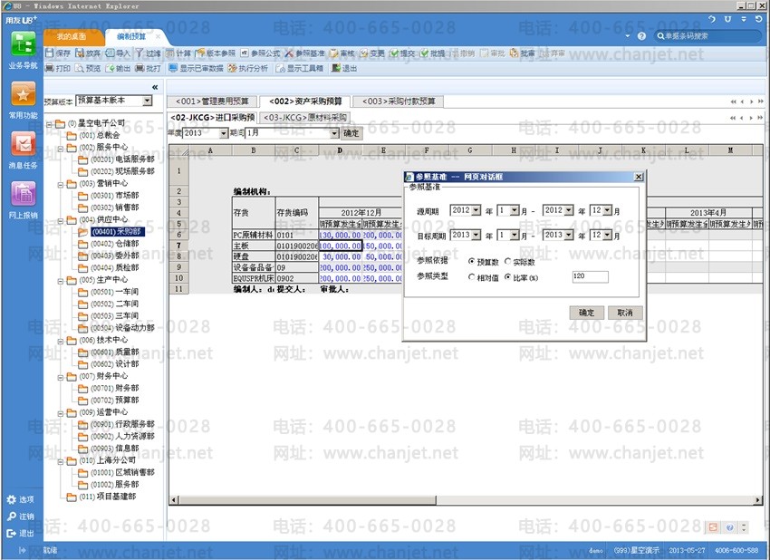 1. 选中要参照编制的预算表的数据单元,单击〖参照基准〗按钮,出现如下图界面。