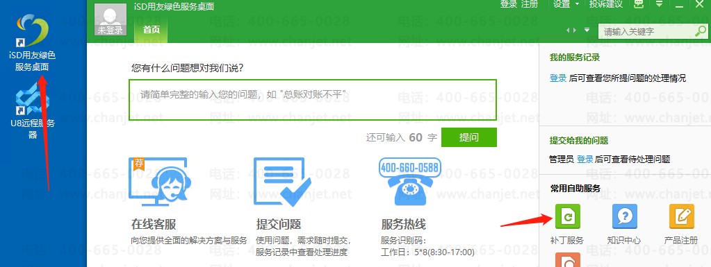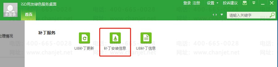 1、打开桌面上的 iSD用友绿色服务桌面,选择右边的补丁服务,如下图所示