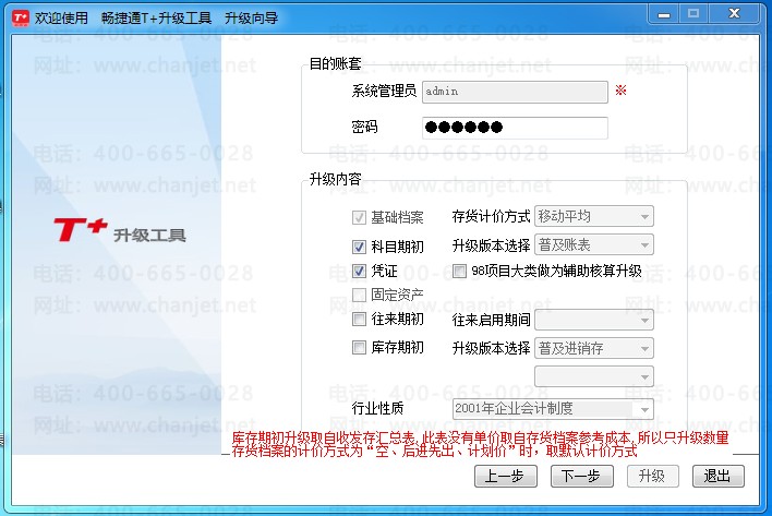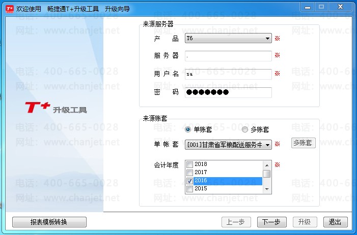 3、输入目的账套信息(主要是系统管理员密码):