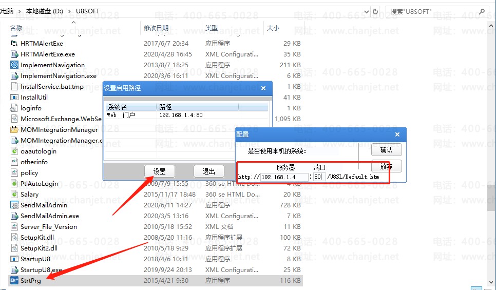 其实问题还是很简单的,在什么都不需要的动的情况下,打开 X:\U8SOFT\StrtPrg.exe文件来设置即可;如下图所示