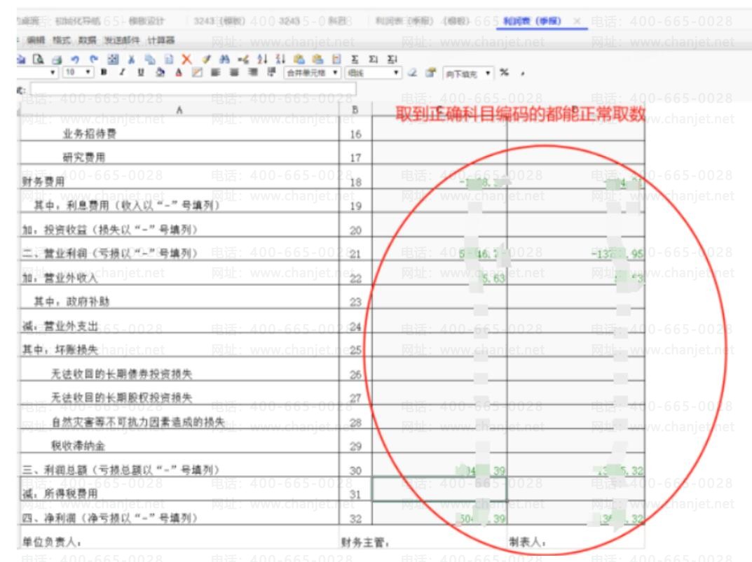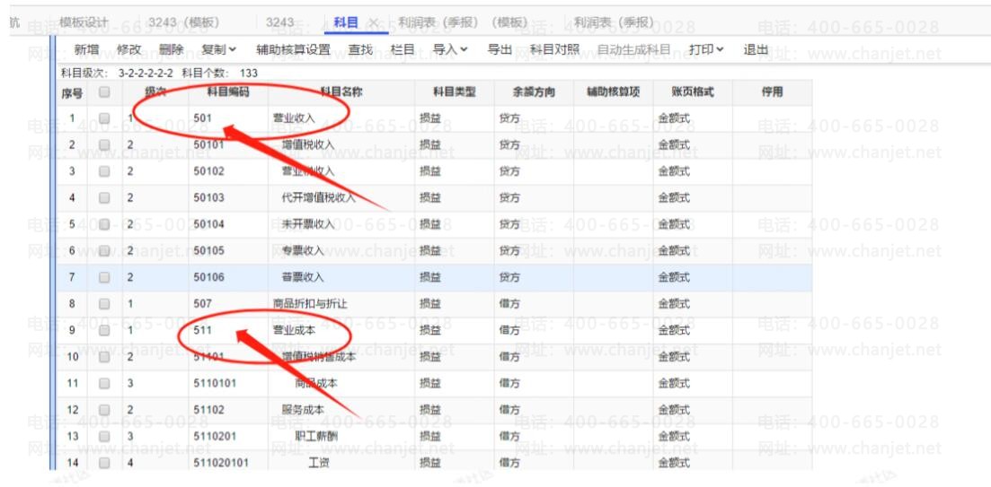 3、对照利润表对应科目编码,修改利润表公式上的科目编码