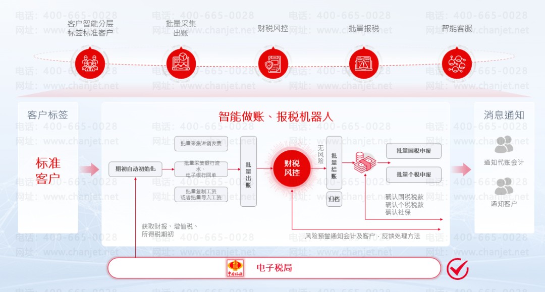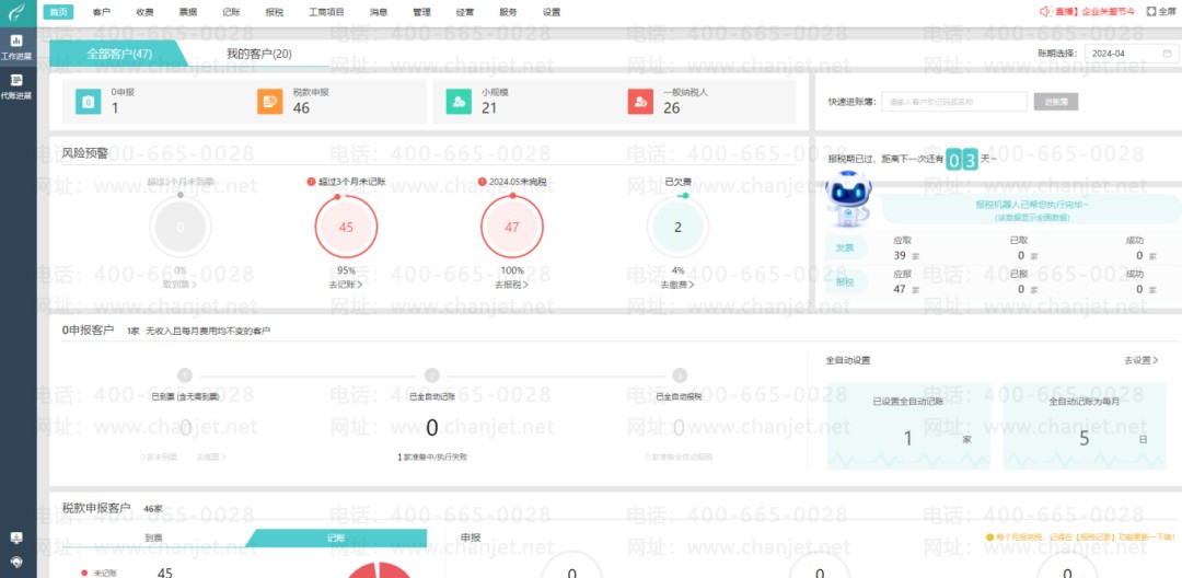 这种标准流程目前借助系统或第三方工具是可以实现的,以用友推出的易代账为例,从取票开始,到缴款结束,全流程动态监控模型,所有业务一目了然,代账进展和项目进展都是记录清晰。