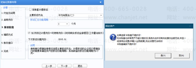 3. 选择折旧信息:如果不勾选本账套计提折旧,那么一旦保存且输入业务数据后,无法修改。